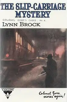 The Slip-Carriage Mystery is a 1928 mystery detective novel by the Irish-born writer Lynn Brock. It was the fourth novel in his series featuring the character of Colonel Wyckham Gore.[1] The previous novels in the series established Gore a popular character during the early stages of the Golden Age of Detective Fiction. A review in the Times Literary Supplement observed "The multiplication of false leads at the beginning is carried a little too far, and the story is at its best when the movement is greatest as it approaches and reaches its end".