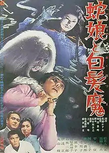 The Snake Girl and the Silver-Haired Witch (蛇娘と白髪魔, Hebimusume to Hakuhatsuma) is a 1968 Japanese horror film directed by Noriaki Yuasa.[1][3] The film is about a young girl named Sayuri who is reunited with her estranged family after years in an orphanage, but discovers that her homelife involves an amnesiac mother, her sister is confined to the attic and begins to wonder if this is related to her father's experiments with poisonous snakes.[4]
