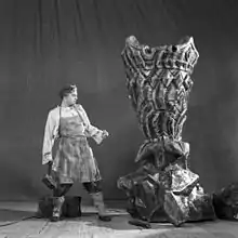 - The Stone Flower, an opera in four acts by Kirill Molchanov. Sergey Severtsev wrote the Russian language libretto. It was the first opera of Molchanov.[57] It premiered on 10 December 1950 in Moscow at the Stanislavski and Nemirovich-Danchenko Music Theatre.[58] The role of Danila (tenor) was sung by Mechislav Shchavinsky, Larisa Adveyeva sung the Mistress of the Copper Mountain (mezzo-soprano), Dina Potapovskaya sung Katya (coloratura soprano).[59][60]