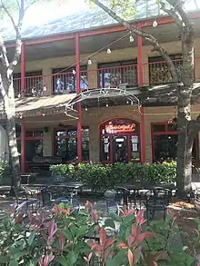 In the 1970s, it was a center for counter culture and a hangout for artists.[1] A 1980 fire burned the building to the ground, but it was rebuilt in the same location.[1][3] At the time of the 1980 fire, the Stoneleigh P was the favorite bar of Dallas restaurateur Shannon Wynne; suddenly finding himself without his favorite "watering hole" inspired Wynne and his friends to open his first bar.[4] The Stoneleigh P has maintained the same dark interior and recognizable red neon sign for its over 40 year history.[5]