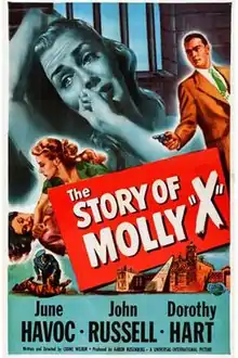 The Story of Molly X is a 1949 American film noir crime film directed by Crane Wilbur and starring June Havoc, John Russell and Dorothy Hart.[1] The screenplay concerns a woman who tries to reform after being sent to prison, but faces obstacles.