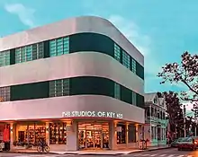 The Studios of Key West, located at 533 Eaton Street, is in the heart of downtown Key West. The three-story building, a piece of Miami Deco architecture, was built in 1951 at the corner of Simonton and Eaton, and is the former Scottish Rite Masonic Center.[3] After a total renovation, the building now includes Key West's largest exhibition space dedicated to contemporary art, a full bar, a box office/information center, a 200-seat auditorium, nine artists' studios, and two classrooms (Filosa). In 2019 Hugh's View, a rooftop terrace, was added to serve as The Studios’ creative space in the sky. In 2016 Books & Books @ The Studios opened offering over 2,500 titles in a variety of subjects and continues to sponsor author talks, book signings, and other events.