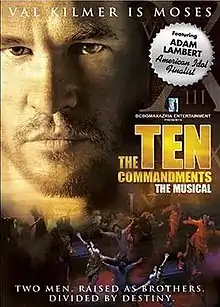 ![]() DVD cover of The Ten Commandments: The Musical starring Adam Lambert and Val Kilmer | |