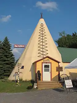 The Tepee is a historic commercial building and roadside attraction located near Cherry Valley in Otsego County, New York, United States. It was built in 1954, and is a wood-frame structure sheathed in galvanized steel on a concrete foundation. It measures 50 feet tall and 42 feet in diameter. It has four levels. Attached to the tepee is an L-shaped wood-frame building with a cross-gable roof. The building houses a gift shop and food stand.[2]:3–4