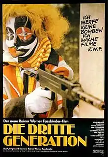 The Third Generation (German: Die Dritte Generation) is a 1979 West German film, a black comedy about terrorism, written and directed by Rainer Werner Fassbinder. The plot follows an ineffectual cell of underground terrorists who plan to kidnap an industrialist.