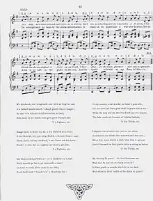 Malcolm MacFarlane (1853-1931) translated this song from the Scottish Gaelic of Evan MacColl (1808-1898).[1] It was first published in Macfarlane's book, Songs of the Highlands, Inverness: Logan & Company, 1902, pp. 44–45.[2] The accompaniment was by Frederick Wilson Whitehead (1863-1926). It is considered by some to be a possible national anthem for Scotland. A spirited rendition of this song by Ina Miller can be found here.