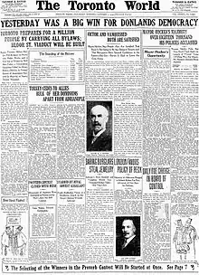 ![]() Front page of The Toronto World, January 2, 1913 | |
