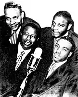 Formed in Baltimore, the Trumpeteers evolved from another gospel group known as the Willing Four. Joseph E. Johnson (lead vocals), an alumnus of the Willing Four and the Golden Gate Quartet, put the Trumpeteers together with James Keels (bass), Raleigh Turnage (tenor), and Willie MacNair (baritone) in 1946.[1][2] Like similar gospel groups, the quartet adopted the Golden Gate Quartet's jubilee style, and began broadcasting jingles and promotions on WCAO radio in Baltimore for a sponsoring shoe company. Not long after, the Trumpeteers were offered a regular broadcast spot by CBS Radio to replace the recently departed Jubalaires.[3]