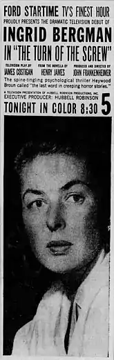 - ↑ "TV: Powerful Portrayal: Ingrid Bergman in Dramatic Debut as Governess in 'Turn of the Screw'". The New York Times. October 21, 1959. p. 87.