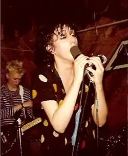 ![]() Cynthia Sley (front) and Pat Place of Bush Tetras at The Underground, 1981 | |