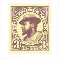Riverside, at the time of the first re-issue, printed copies of the stamp that was featured on the cover art.[2] Some of these made their way through the United States Postal Service, which issued a restraining order against the company.[2] Monk was subsequently featured on a genuine stamp, which was issued by the U.S. Postal Service in 1995.[7]