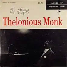 The Unique Thelonious Monk is a 1956 album by Thelonious Monk.[6] It was his second for Riverside Records, and, like his Riverside debut, is made up of standards. It was a continuation of Riverside's strategy to broaden consumer interest in Monk by having him record cover versions of well-known material which, Riverside hoped, would help to break down the prevailing perception that Monk's original music was "too difficult" for mass-market acceptance.