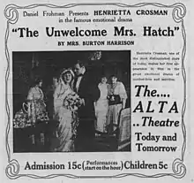 The Unwelcome Mrs. Hatch is a 1914 American drama film directed by Allan Dwan, written by Allan Dwan and Mrs. Burton Harrison, and starring Henrietta Crosman, Walter Craven, Lorraine Huling, Minna Gale and Harold Lockwood. It was released on September 10, 1914, by Paramount Pictures.[1][2]