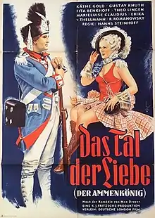 The Valley of Love (German: Das Tal der Liebe or Der Ammenkönig) is a 1935 German comedy film directed by Hans Steinhoff and starring Käthe Gold, Richard Romanowsky and Marieluise Claudius.[1] [2] It was shot at the Johannisthal Studios of Tobis Film in Berlin. The film's sets were designed by the art director Franz Schroedter. It is based on the 1902 farce Das Tal des Lebens by Max Dreyer. It was given a fresh release in 1950 by Deutsche London Film.