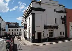 The Victoria public house occupies a corner of the site of The Lido, Bristol, taking a portion of the front building. On one side of the building is the spa entrance to the Lido, with the pool on the other side. The public house was converted from part of the original lido buildings and was opened by 1867. The door to the public house is a later addition, meaning the building frontage has one door in the centre for the pool and one slightly to the right.[1]