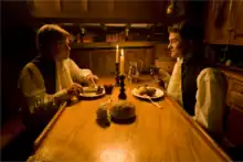 ![]() A scene from the documentary. The actor portraying Charles Darwin as a young man is on the right. | |
