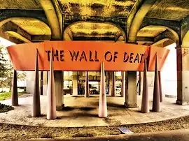 The Wall of Death is a permanently sited public art installation[3] located under the University Bridge in Seattle, alongside the Burke-Gilman Trail and NE 40th Street in the University District. It was designed and built by Mowry Baden and his son, Colin, in 1993.