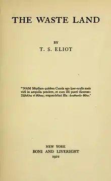 - Eliot, T. S. (1922). (1st ed.). New York: Horace Liveright – via Wikisource.