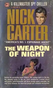 The Weapon of Night is the 19th novel in the long-running Nick Carter-Killmaster series of spy novels.[1] Carter is a US secret agent, code-named N-3, with the rank of Killmaster. He works for AXE – a secret arm of the US intelligence services.