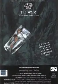 The Weir is a play written by Conor McPherson in 1997. It was first produced at The Royal Court Theatre Upstairs in London, England, on 4 July 1997. It opened on Broadway at the Walter Kerr Theatre on 1 April 1999. As well as several other locations in the UK and the U.S., the play has been performed in Ireland, Germany, the Czech Republic, Slovenia, Australia and Canada.[2]