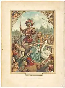 "The Wild Swans" (Danish: De vilde svaner) is a literary fairy tale by Hans Christian Andersen about a princess who rescues her 11 brothers from a spell cast by an evil queen. The tale was first published on 2 October 1838 in Andersen's Fairy Tales Told for Children. New Collection. First Booklet (Eventyr, fortalte for Børn. Ny Samling. Første Hefte) by C. A. Reitzel in Copenhagen, Denmark. It has been adapted to various media including ballet, television, and film.