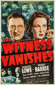 The Witness Vanishes is a 1939 American mystery film directed by Otis Garrett and starring Edmund Lowe, Wendy Barrie, and Bruce Lester.