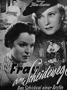 The Woman at the Crossroads (German: Die Frau am Scheidewege) is a 1938 German drama film directed by Josef von Báky and starring Ewald Balser, Magda Schneider and Karin Hardt.[1] It was made partly at the Hunnia Film Studios in Budapest. The film's sets were designed by the art director Emil Hasler.