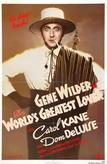 The World's Greatest Lover is a 1977 American parody film directed, written by and starring Gene Wilder, and co-starring Carol Kane and Dom DeLuise. It is a tribute/spoof of classic silent comedies and "old Hollywood" of the 1920s, specifically the popularity of romantic icon Rudolph Valentino.
