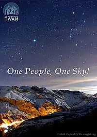 Based on the peacemaking slogan of "One People, One Sky", TWAN aims to demonstrate that humanity is one family when considered under the roof of the night sky.[2] According to its website, "TWAN is a bridge between art, humanity, and science. The eternally peaceful sky looks the same above all the landmarks and symbols of different nations and regions, attesting to the truly unified nature of Earth as a planet rather than an amalgam of human-designated territories."[3]
