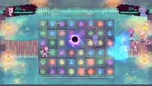The game is divided into visual novel sections and puzzle dungeons. Most of the game takes place in the visual novel portions, which allow the player to choose dialog options (that influence rather than change the direction of the story), complete quests, and choose whom to spend time with each day, as well as who will assist the player in dungeons.[2][3] This portion of the game takes place largely on the grounds of a high school and a couple of surrounding areas.[3]