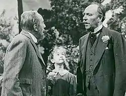 ![]() Scene from "Lord Emsworth and the Girl Friend", with McAllister (Radcliffe), Gladys (Jones), and Lord Emsworth (Richardson) | |