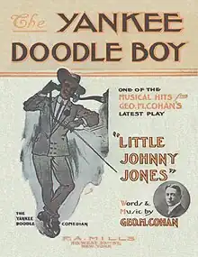 "The Yankee Doodle Boy", also known as "(I'm a) Yankee Doodle Dandy" is a patriotic song from the Broadway musical Little Johnny Jones, written by George M. Cohan. The play opened at the Liberty Theater on November 7, 1904. The play concerns the trials and tribulations of a fictional American jockey, Johnny Jones (based on the real-life jockey Tod Sloan), who rides a horse named Yankee Doodle in the English Derby. Cohan incorporates snippets of several popular traditional American songs into his lyrics of this song, as he often did with his songs. The song was performed by James Cagney in the 1942 film Yankee Doodle Dandy, in which he played Cohan.[1]