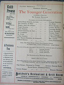 The Younger Generation is a comedy play by the British writer Stanley Houghton. It takes place in a dining room of a house in the suburbs of Manchester, during a period of twenty four hours.