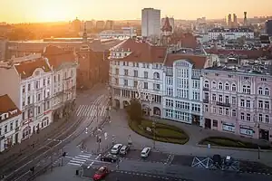 The building, realized according to the design of Fritz Weidner, housed at its time the Brandt Department store, the second one in the city, after Jedynak on Gdanska Street. The client was Max Zweininger,[8] owner of a famous hat manufactory who was living on Focha street 2. The edifice is now the headquarters of Bank Pekao SA.