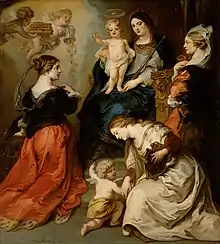 Van Thulden explored the portrait genre and made group portraits of important families as well as individual portraits of prominent people from local political and religious circles. In some of these works van Thulden created a portrait style that included allegorical allusions and attempted to recapture the elegance and delicacy of van Dyck's portraits.[3]