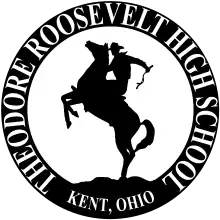 Roosevelt's teams are known as the Rough Riders, owing to the school's namesake Theodore Roosevelt, and the school colors are red, white, and black. As of 2017, Roosevelt fields 28 varsity athletic teams, the most recent addition being the girls golf team, which became a varsity sport in August 2013 after two years as a club. Previously, girls who wanted to play golf could compete as individuals on the boys team.[76] There are additional teams in most sports at the junior varsity level as well as a few sports that have freshman-only teams.[77] All teams except the golf, ice hockey, and bowling have their home games in facilities on the Roosevelt campus. Ice hockey home games are held in the Kent State University Ice Arena, boys golf plays their home matches at Windmill Lakes Golf Club in Ravenna, girls golf uses the Fairways of Twin Lakes in Franklin Township, and the bowling teams have home matches at the Kent Lanes bowling alley.[78][79][80][81]