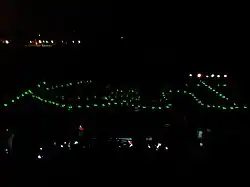 The Rough Rider Marching Band and flag corps perform at home and away football games, and at local and national competitions. In late October, after the football season, the band separates into concert band and wind symphony ensembles.[54] Immediately after the final home game of every season, the band performs what is known as "Script Kent", a formation similar to "Script Ohio" performed by The Ohio State University Marching Band and using the same song, Le Régiment de Sambre et Meuse by Robert Planquette. As part of the tradition, the band spells out "Kent" with the stadium lights off and band members wearing green glow sticks around their ankles that are uncovered only after the stadium lights have been turned off. The marching band also hosts a yearly band show in late August, known as the "Roosevelt Premier of Bands" that features several local high school bands and marches in Kent's annual Memorial Day parade in May.[58] Additional extra-curricular performance groups include Jazz Band and brass, woodwind, percussion ensembles. The Roosevelt orchestra program is composed mainly of an all-string chamber orchestra. Extracurricular ensembles include a pit orchestra for the school's annual musical production and several smaller ensembles.[54]