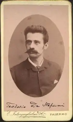 Theodosio De Stefani Perez was born in the family castle in Santa Ninfa (Trapani) in southwestern Sicily, then in the Kingdom of the Two Sicilies on 6 February 1853.