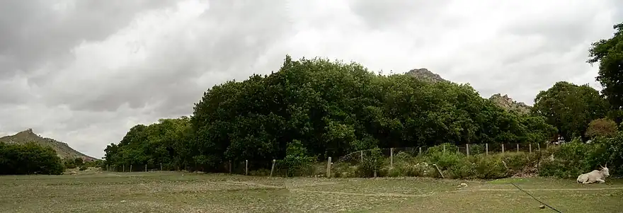 14°1′40.80″N 78°19′30.37″E / 14.0280000°N 78.3251028°EThimmamma Marrimanu (Telugu: తిమ్మమ్మ మర్రిమాను, lit. "Thimmamma's Banyan Tree") is a banyan tree in Anantapur, located about 25 kilometers from Kadiri, Andhra Pradesh, India. It is probably a specimen of Ficus benghalensis. In the Telugu language, "marri" denotes "banyan" and "manu" denotes "trunk".[1][2] Its canopy covers 19,107 m2 (4.721 acres),[3][4][5] and it was recorded as the largest tree specimen in the world in the Guinness Book of World Records in 1989.[3][6][7] The tree is revered by the people of Dharmic religions alike, namely, Hinduism, Buddhism, Jainism, and Sikhism.
