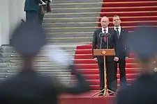 Vladimir Putin delivered his speech as President of Russia:[5]