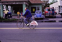 ![]() State Assemblyman Tom Hanna cycling in Irondequoit Memorial Day Parade 1979 | |