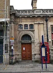 This is a listed building on County Court Road (formerly Regent Street), Cheltenham, Gloucestershire,[82] designed by Sorby in 1868 and completed in 1870.[32] It was built on the site of the previous county court – said to be a "damp, dismal barn" – and was opened with "very little ceremonial" on 6 January 1871. However the Cheltenham Examiner bemoaned its location, saying that "one can but regret that such a building should be so miserably located, and its beauty so completely lost".[83] Historic England describes the materials of the building as follows:[82]
