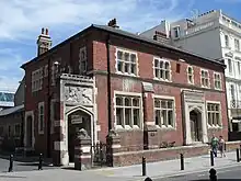 Sorby designed Bromley's Town Hall, completed in 1863.[32][33] It was paid for by Cole-Childs, the local lord of the manor and Deptford coal merchant, who also manufactured the bricks. Bromley's Market Square was redesigned to accommodate it, and the building included at different times a police station, a cell, a fire station, a free library, and a room for the town corporation's meetings. However it was never used as a town hall because Bromley was run by the Vestry, which did not use the building. It was eventually rented by an estate agent, the local paper said it was "monstrous", and it was demolished in 1933,[34][35][36] being replaced in 1906 by a new town hall designed by R. Frank Atkinson.[34][37]