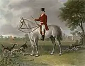 "Lord Delamere," etching by Henry Calvert (1798–1869). Thomas Cholmondeley astride a dappled grey hunter.