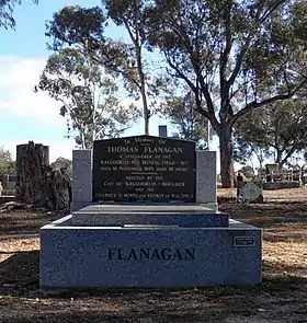 In 1981 the Bendigo Advertiser of Thursday 10 September, page 7, announced the discovery of Thomas Flanagan's unmarked grave in the White Hills Cemetery in Bendigo. Reporter David Horsfall wrote: