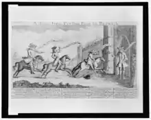 The period of comparative peace after 1713 ended with the outbreak of the War of the Austrian Succession, and in January 1741, Fowke became Colonel of a new regiment, the 43rd Foot. He exchanged into the Queen's Royal Regiment, then based in Scotland, and promoted Brigadier General in June 1745, three months before the Jacobite rising of 1745.[10] As deputy to Sir John Cope, military commander in Scotland, he fought at Prestonpans in September; their army collapsed in the face of the Jacobite assault, in a battle lasting less than 15 minutes. Fowke commanded two regiments of dragoons, who fled without firing a shot, and halted only when they reached Berwick-upon-Tweed. He, Cope and Lascelles were later tried by a court-martial in 1746; while all three were exonerated, Cope never held command again.[11]