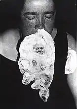 Although these archives have held a strong attraction for those interested in the paranormal, more significantly they have had a very powerful effect in stimulating artistic and cultural expressions. T.G.’s photographs have captured the imagination of many curators. His photos have appeared in art exhibits throughout Canada, from the Dunlop Art Gallery in Regina, Saskatchewan, to the Prefix Institute of Contemporary Art in Toronto, Ontario. Internationally his photos were included in the exhibit "Spiritus" at Magasin3 Stockholm Konsthall in Sweden in 2003.[31] In 2005 they appeared in the exhibition “The Perfect Medium: Photography and the Occult,” held at the Maison européenne de la photographie in Paris and the Metropolitan Museum of Art in New York.[32] Later that year they were featured in the Symposium “Dark Rooms: Photography and Invisibility,” hosted by Princeton University.[33] T.G.’s photographs and the Hamilton family’s archives are a major component of the work of Belfast artist Susan MacWilliam to appear in the 2009 Venice Biennale.[34] They are also featured in the book: Susan MacWilliam: Remote Viewing (2009).[35]
