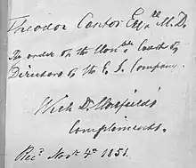 Writing on Horsfield's Catalogue of the mammals in the East India Company Museum on a copy to Theodore Edward Cantor