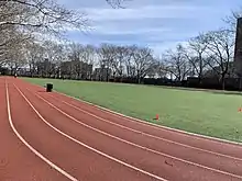 Thomas Jefferson Park contains two playgrounds. One is on First Avenue and 111th Street. at the southwestern corner, while the other is at Pleasant Avenue and 114th Street, at the northeastern corner.[12] There are also three baseball fields: two in the southern third of the park, and the third at the eastern boundary of the park's center third. In addition, there are four basketball courts, two each at the northeastern and southeastern corners. The northeastern corner also contains two volleyball and eight handball courts, while the northwestern corner contains a soccer field.[13] A dog run is at the southeast corner of the park.[14]