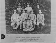 LeBoutillier was a member of Squadron A, N. G. N. Y. as a private from 1904 to 1908, before being honorably discharged in 1909 as a corporal.[4] He took up competitive shooting in the early 1900s, winning in 1905 the United States Revolver Association (USRA) military championship.[6] By 1908, he had become the secretary of the USRA.[7] LeBoutillier later won a revolver tournament in Europe and in 1908 was selected to the United States Olympic shooting team.[5] He competed in the 50 yard free pistol event and placed 19th with a score of 436.[1]